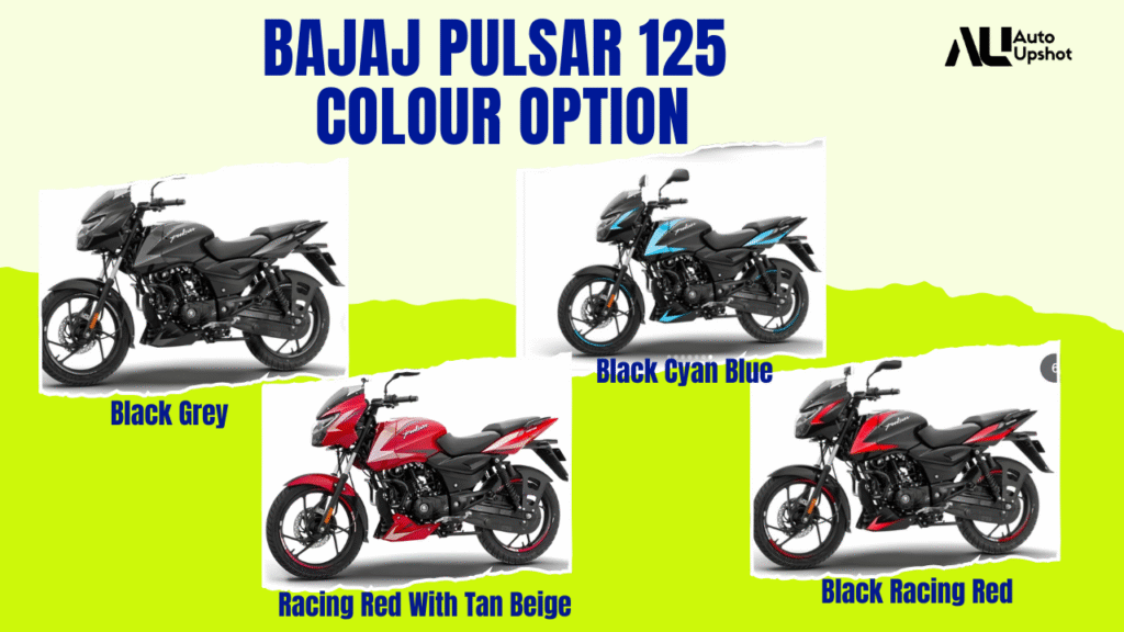 The 2026 Bajaj Pulsar 125 is offered in four eye-catching colour options, including Black Grey, Black Racing Red, Black Cyan Blue, and Racing Red with Tan Beige. These colours complement the sporty design and allow buyers to choose a shade that matches their personality.